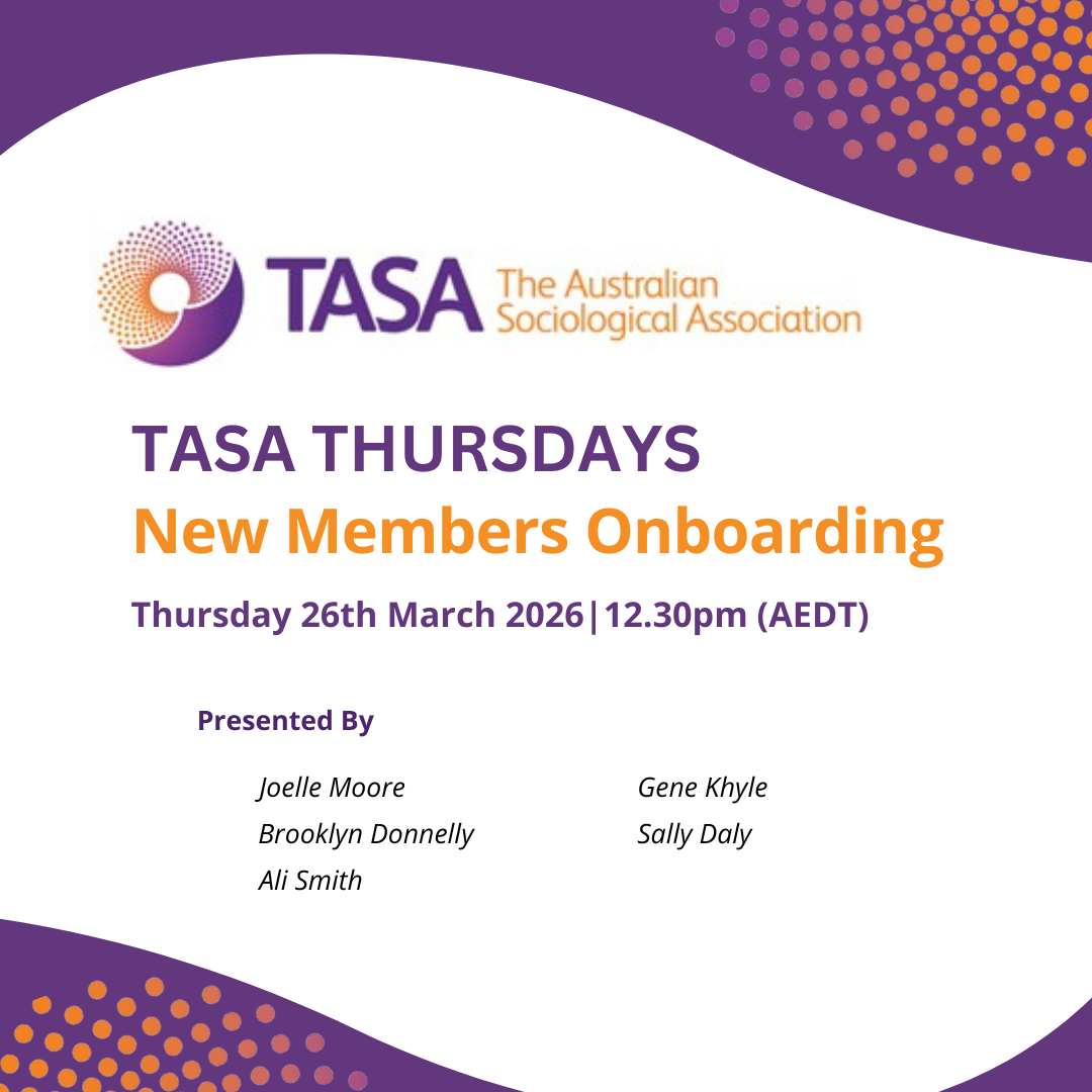 Join us on 26 March at 12:30pm AEDT for a special TASA Thursdays New Members Onboarding session. Hosted by the Student Career Stage Group Convenors, this webinar will introduce TASA’s role and objectives, outline key member benefits, and guide you through accessing resources such as thematic groups, career stage networks, journal access, events and the newsletter. Discover how to get involved and make the most of your TASA membership.